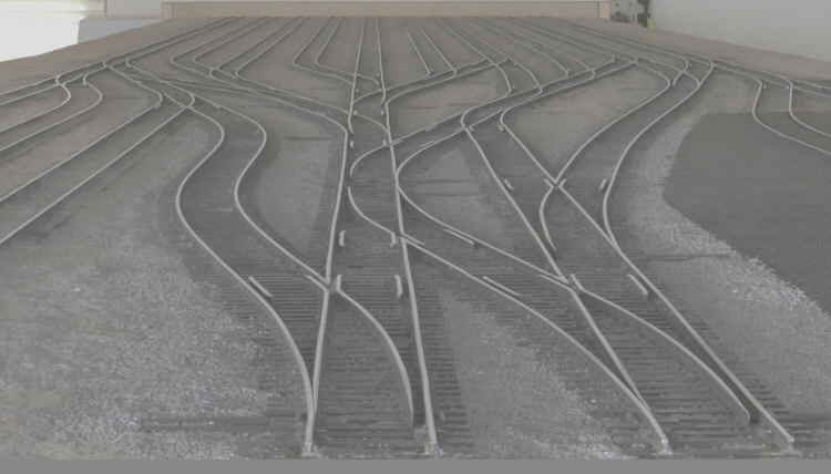 After using all the tools available to check your work, sight across and along the module framework, roadbed, and track at rail top level. It's often surprising what is revealed when you do. You'll observe things that your tools may not have exposed. Dips, rises, twists, kinks, crooked track and turnouts, and all manner of other deviations from perfect cabinetry and trackwork will show up with surprising clarity. Do this frequently as you progress through all phases of building your module and your track. Here's an example of what I saw when sighting down one of the tracks on Mojave Yard.
